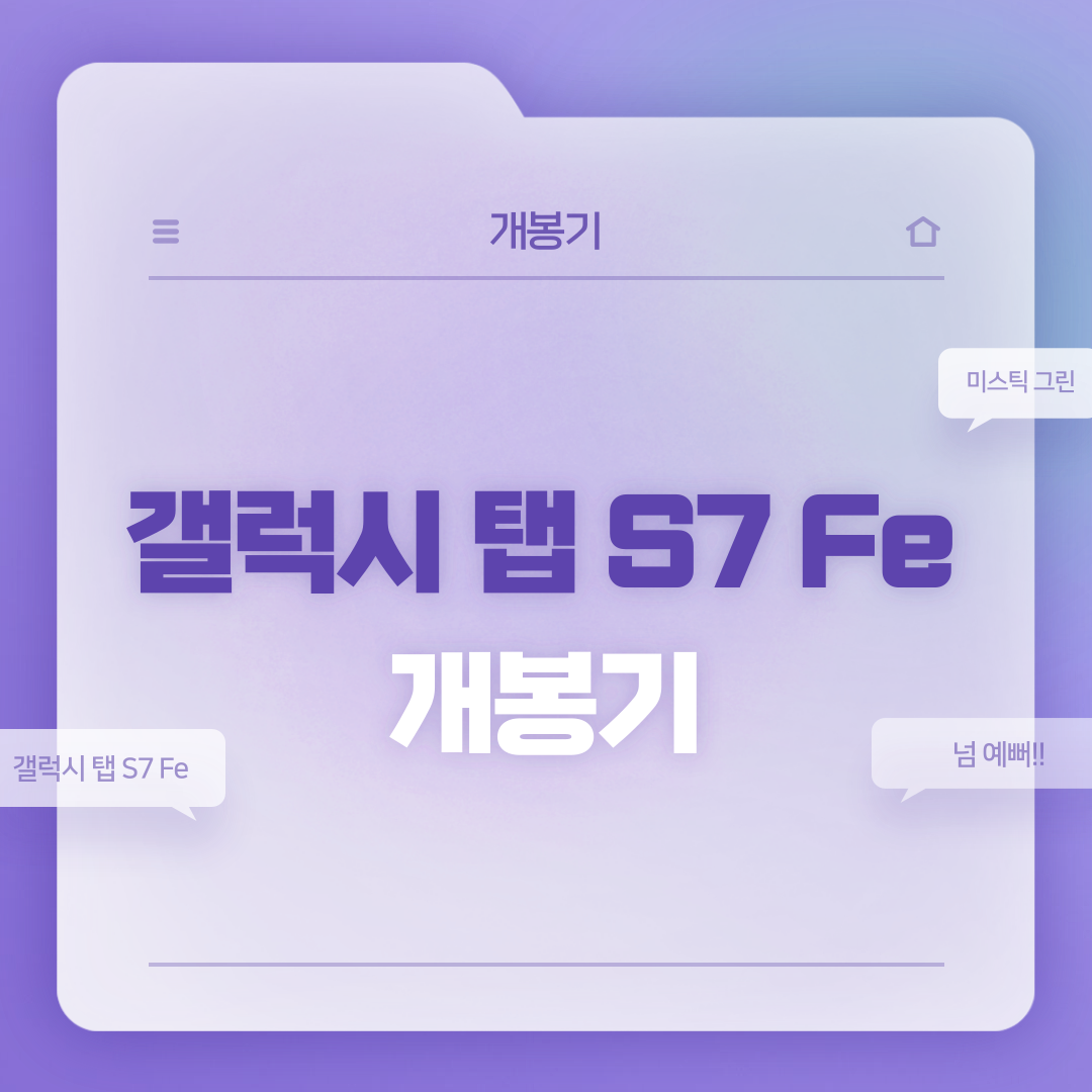 안녕하세요, gangms06입니다. 며칠전 아는 분을 통해 삼성전자 임직원몰에서 갤럭시 탭 S7 Fe 와이파이 128GB 미스틱 그린 모델을 싸게 구매했는데요, 갤럭시 탭 플래그십 모델은 처음 사용해보기 때문에 굉장히 설렙니다. ㅎㅎ