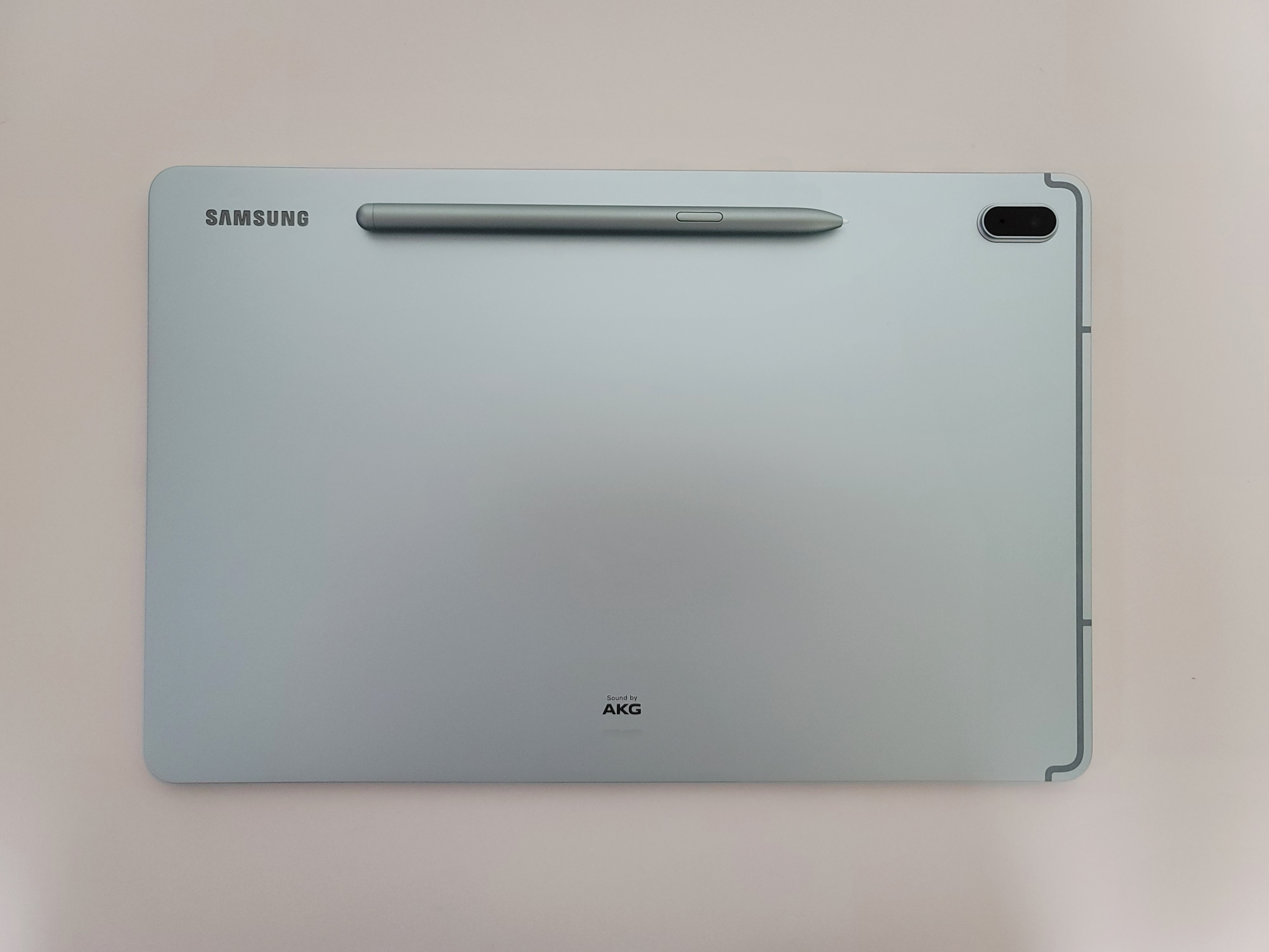 갤럭시 탭 S7 Fe의 후면인데요, 정말 예쁩니다! 미스틱 핑크와 그린 색상 중에 고민을 했었는데 그린 색상하기 잘한것 같네요. ㅎㅎ