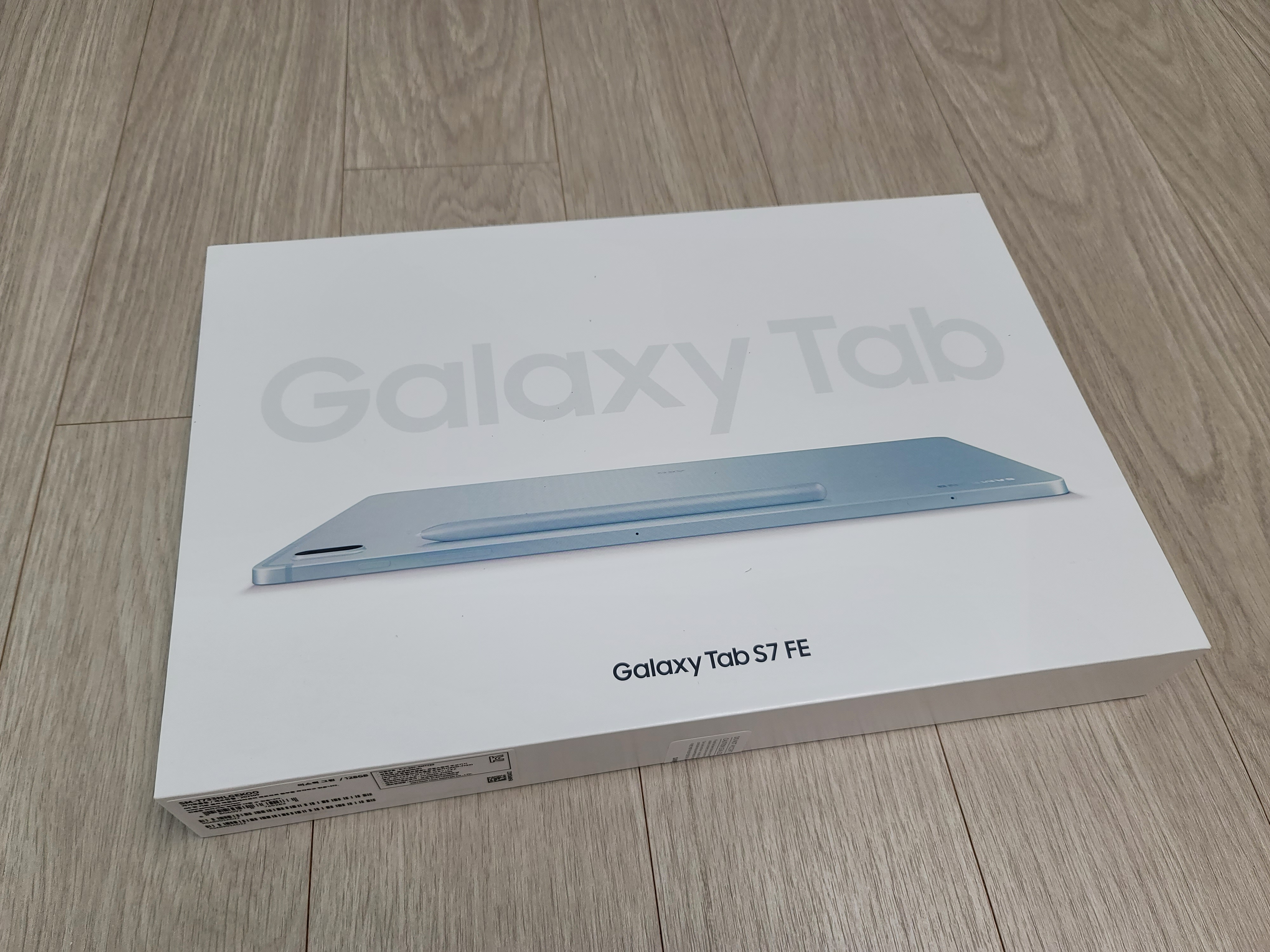 갤럭시 탭 S7 Fe의 상자입니다. 전체적으로 Galaxy Book 시리즈의 박스 디자인이 생각나네요.